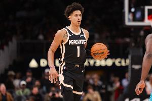 此役老鹰前锋杰伦·约翰逊得分助攻一肩挑,出场37分钟22投11中,三分11中4拿到26分5篮板10助攻1抢断,正负值+25。