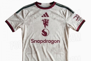 曼联新赛季第三球衣谍照:米白色主色调,设计灵感源于兰开夏玫瑰