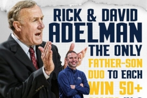据统计,大卫·阿德尔曼和里克·阿德尔曼成为历史首对均带队50+胜的父子教练组合。