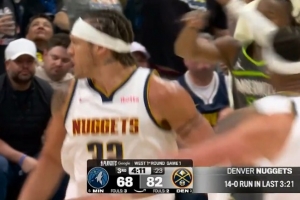 上一篇: 多余动作!麦克丹尼尔斯篮下直接将约基奇推飞2米远吃T