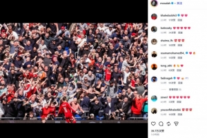 利物浦生涯最后一场德比战破门!萨拉赫社媒晒同球迷互动庆祝照