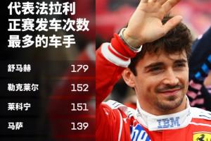 体育资讯03月21日讯 在上周F1中国大奖赛后,勒克莱尔代表法拉利参加正赛的场数来到了152场,超越莱科宁排名队史第2,离第1舒马赫27场。
